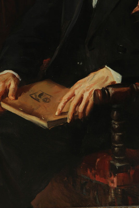 Oil on canvas, signed lower right. Seated man identified as Joseph Hartley Esq., reputedly a doctor. 44"h. 30"w., in a frame, 34"h. 50"w.