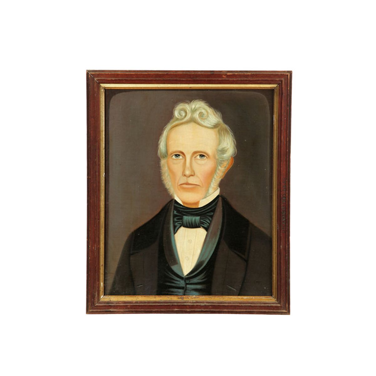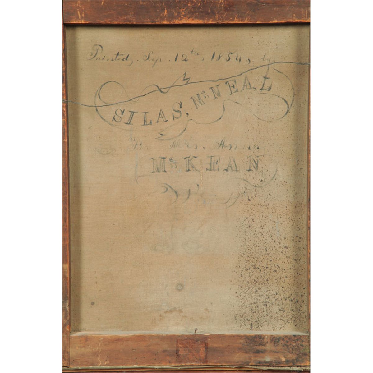 Oil on canvas, signed on the back. Gentleman with white hair. Marked on the back "Painted Spt. 12th 1854 by Silas McNeal for Mrs. Anna McKean". 22"h. 18"w., in a frame stamped "Atlantic Fire & Ins. Co., 25 1/4"h. 21 1/4"w.