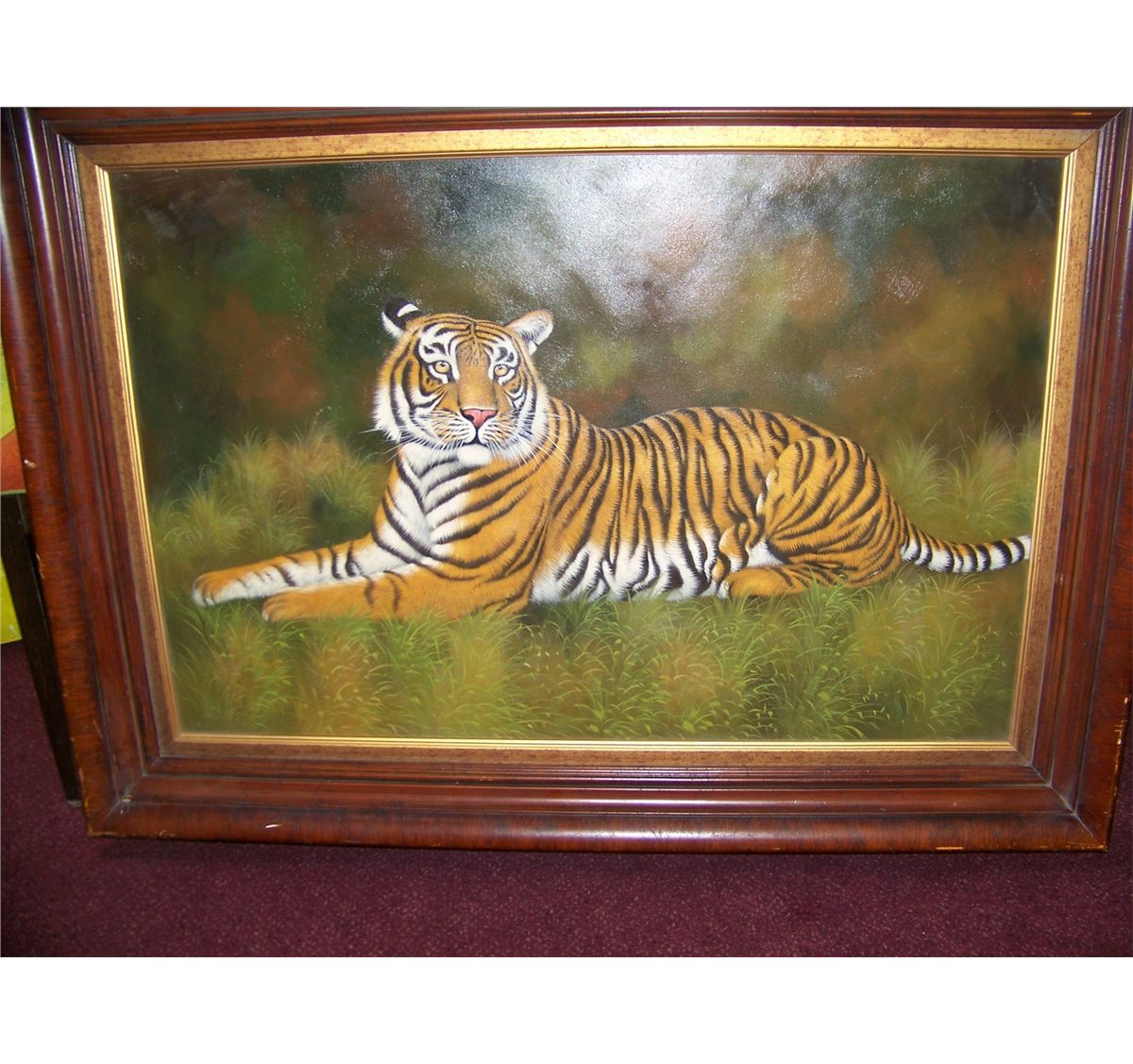 "PORTRAIT OF A TIGER" PHOTO-REALISTIC ORIGINAL OIL ON CANVAS FRAMED PAINTING