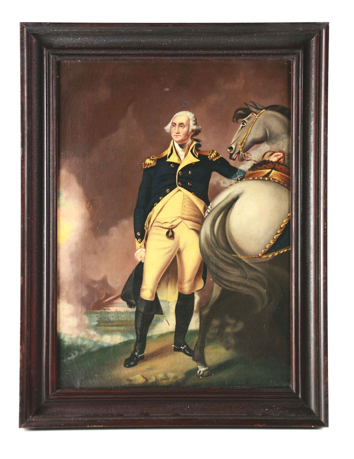 Period copy of a portrait by John Trumbull depicting Washington at Dorchester Heights. It is on the original canvas and stretcher.
