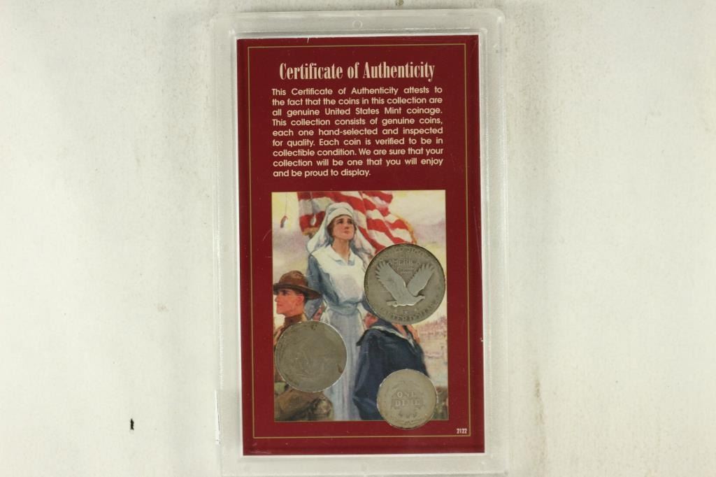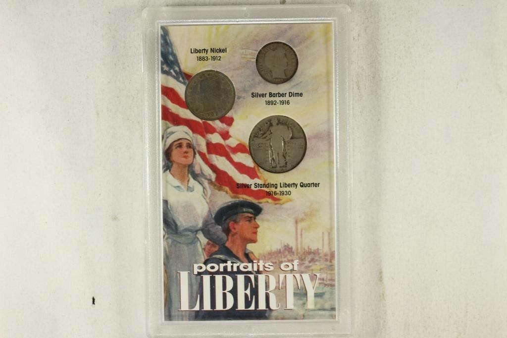 NICKEL, BARBER DIME AND STANDING LIBERTY QUARTER