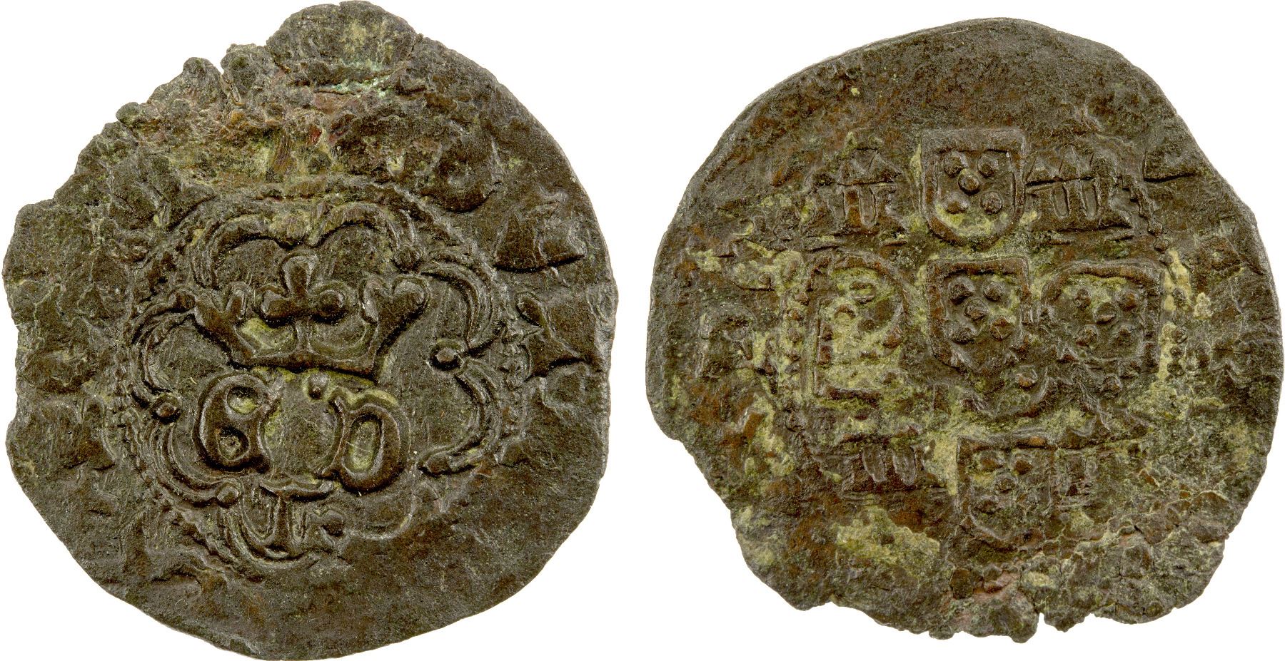 PORTUGAL: Duarte I, 1433-1438, AE real preto (1.50g), Lisbon, ND-L, Gomes-Du.02var, Vaz-16, legends not fully struck up, ragged edge, VF, ex Joe Sedillot Collection.