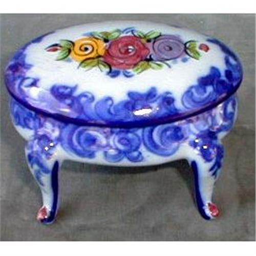 <tr><td>Title:PORTUGAL Footed TRINKET Box Vestal Alcobaca HP</td></tr>