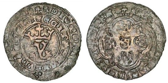 Rev: + IhnS : D?I : GRA : R?X : PO : ?T : AL (double saltire stops), coat-of-arms of Portugal within quatrelobe.