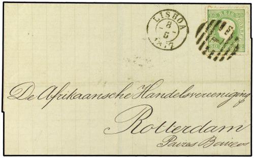 1877 (8 Mayo) LISBOA a ROTTERDAM (Holanda), a donde llegó 13 de Mayo. Franqueada con sello de 50 reis (Afinsa nº 41)
