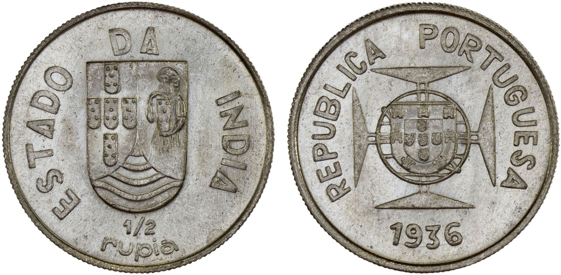 PORTUGUESE INDIA: Republic, AR 1/2 rupia, 1936, KM-23, one-year type, a lustrous attractive example, Choice Unc.