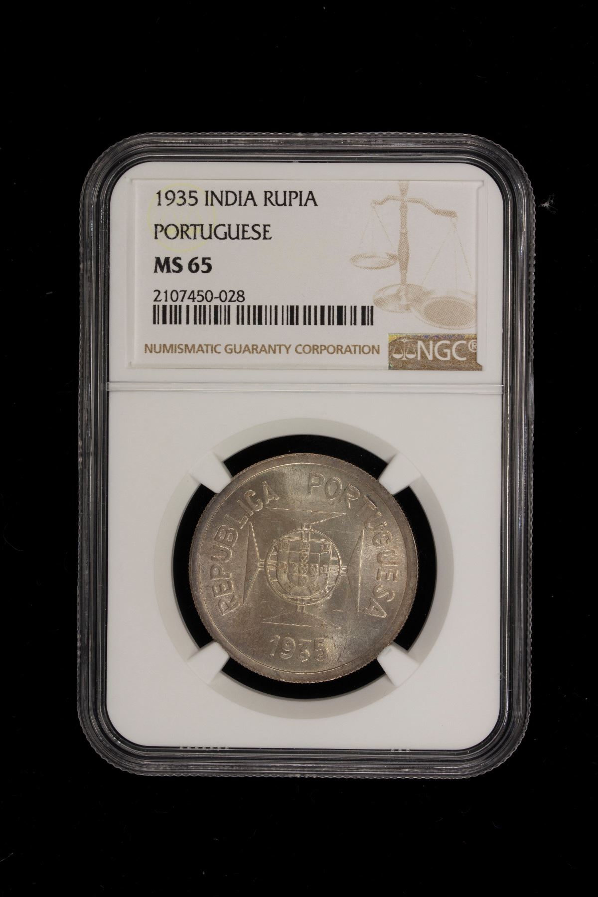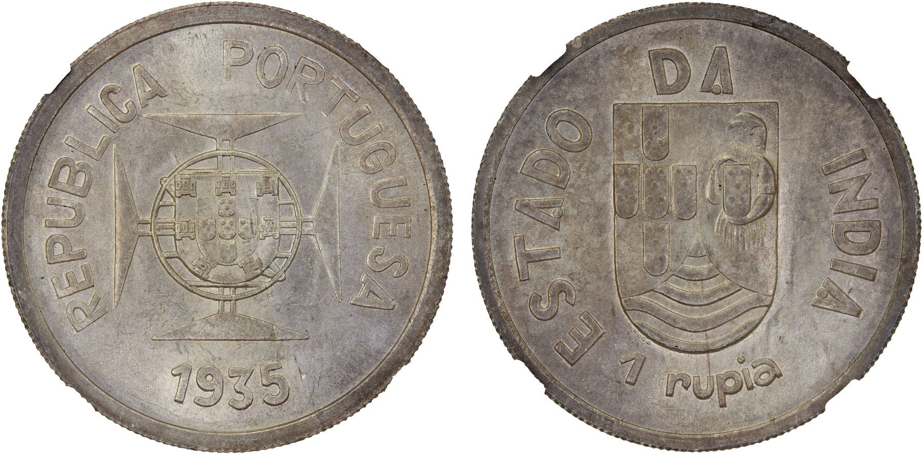 PORTUGUESE INDIA: Republic, AR rupia, 1935, KM-22, Gomes-R 10.01, one year type, a superb quality example for type! NGC graded MS65.
