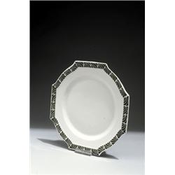 Porzellan. Grünes Dekorband aus Vierecken. Achteckige Form. Ø 20,5 cm. Bez.: Firmenmarke (unterglasurgrüner Stempel). Um 1910