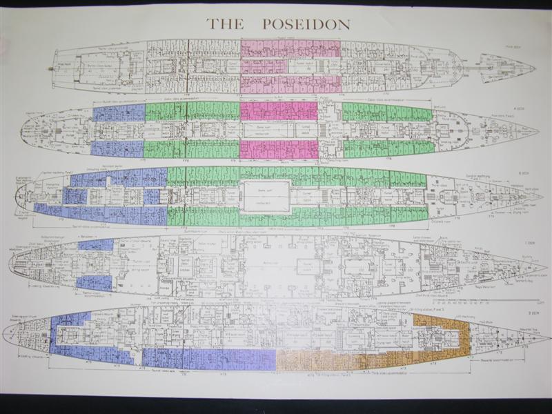 Poseidon Adventure (1972) - Original production used waterproof blueprints of all decks of the ship. Waterproofed to use on set. (23 x 37)