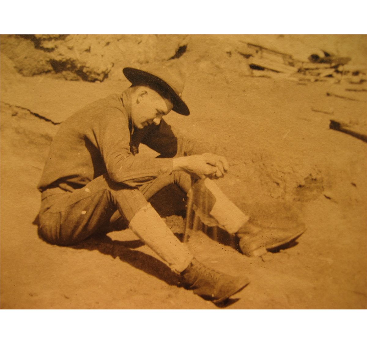(1) POST CARDS RPPC VINTAGE MILITARY MAN PHOTO WORLD WAR I WW1 AT EASE IN THOUGHT WHISKING DIRT THROUGH HIS HANDS