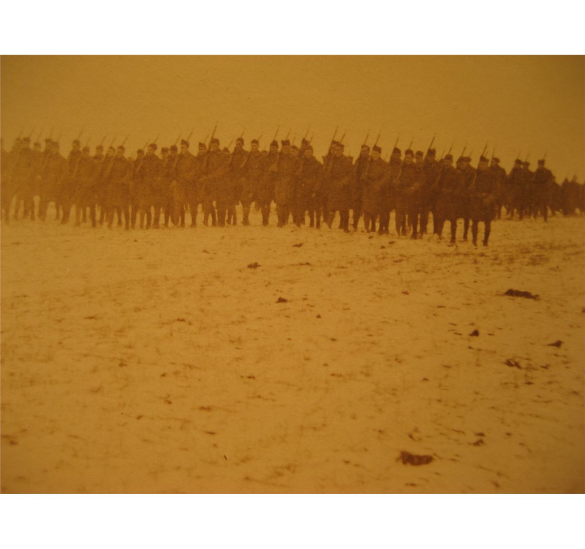 (1) POST CARDS RPPC WAR WORLD 1 MARCHING SNOW MILITARY CADENCE