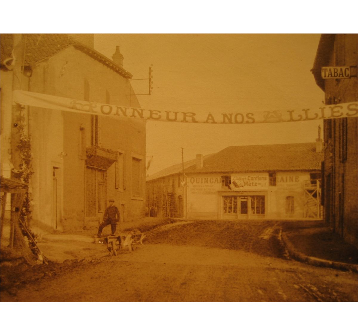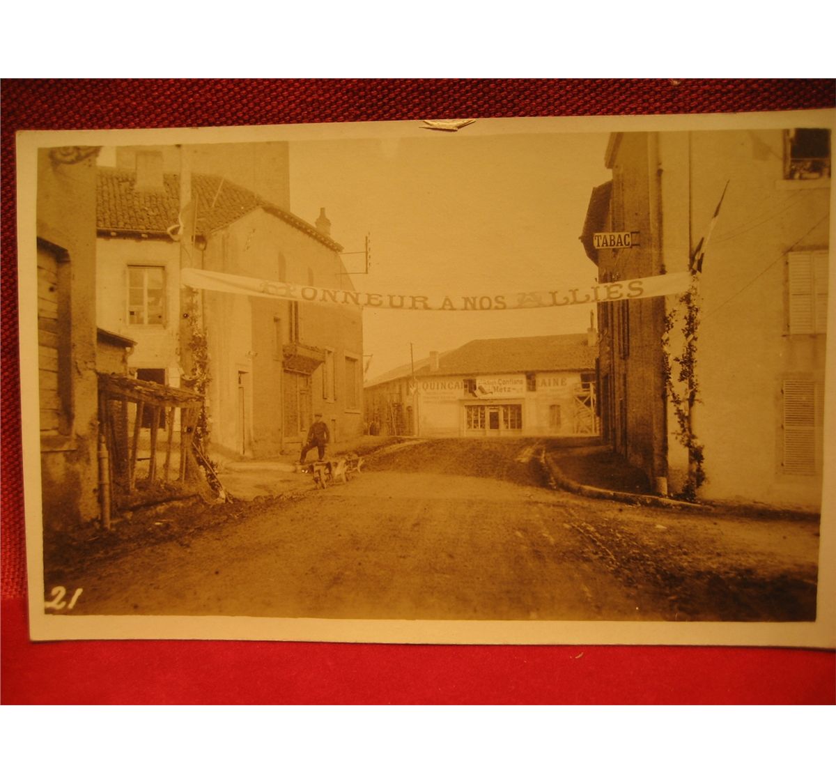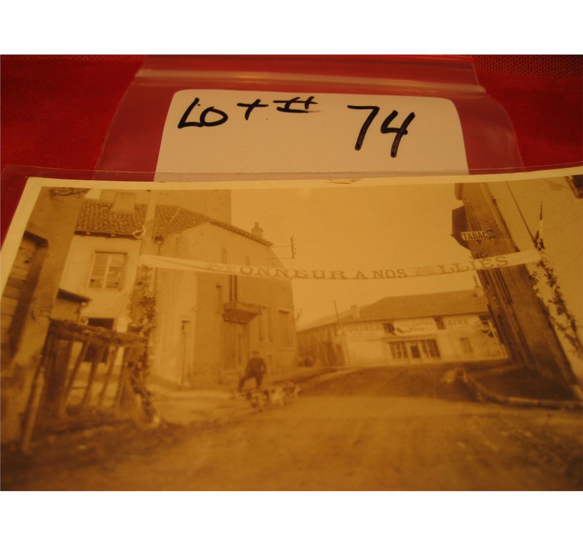 (1) POST CARDS RPPC WORLD WAR 1 WW1 " HONNEUR A NOS ALLIES " TOWN CITY