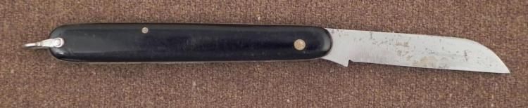 OFFERED HERE IS A POST-NAZI WWII GERMAN IMPORT FOLDING KNIFE. DARK THE KNIFE HAS BAKELITE GRIPS WITH A BOTTOM LOOP. IT IS MARKED:HOFFRITZ-NY-GERMANY-HAND FORGED AND IS 6 1/4" OPENED. *