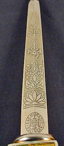 POST WW2 ROYAL DUTCH NAVAL OFFICERS DAGGER - Blade is maker marked E and F Horster Solingen Germany and is double engraved. Approx 9.75" long