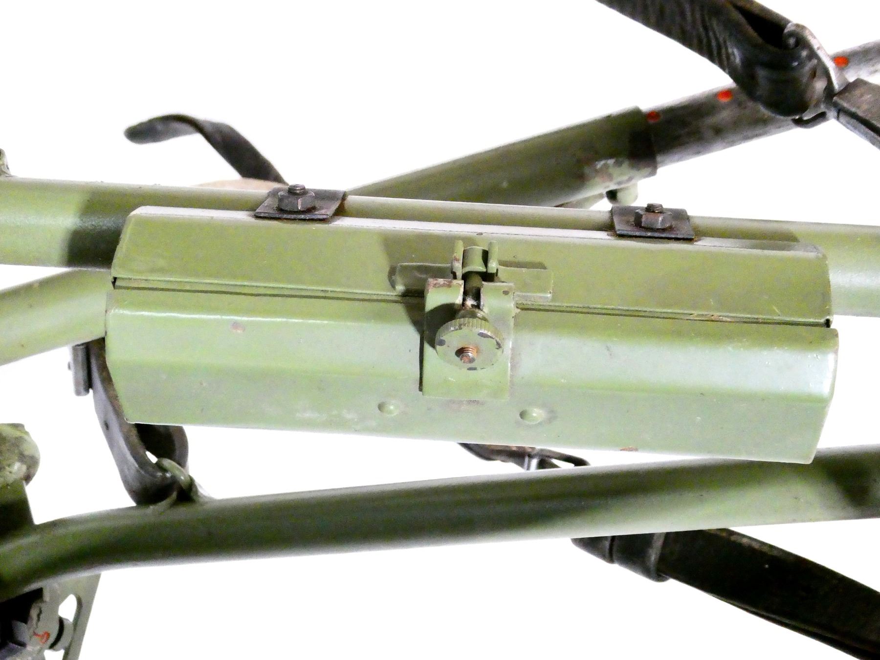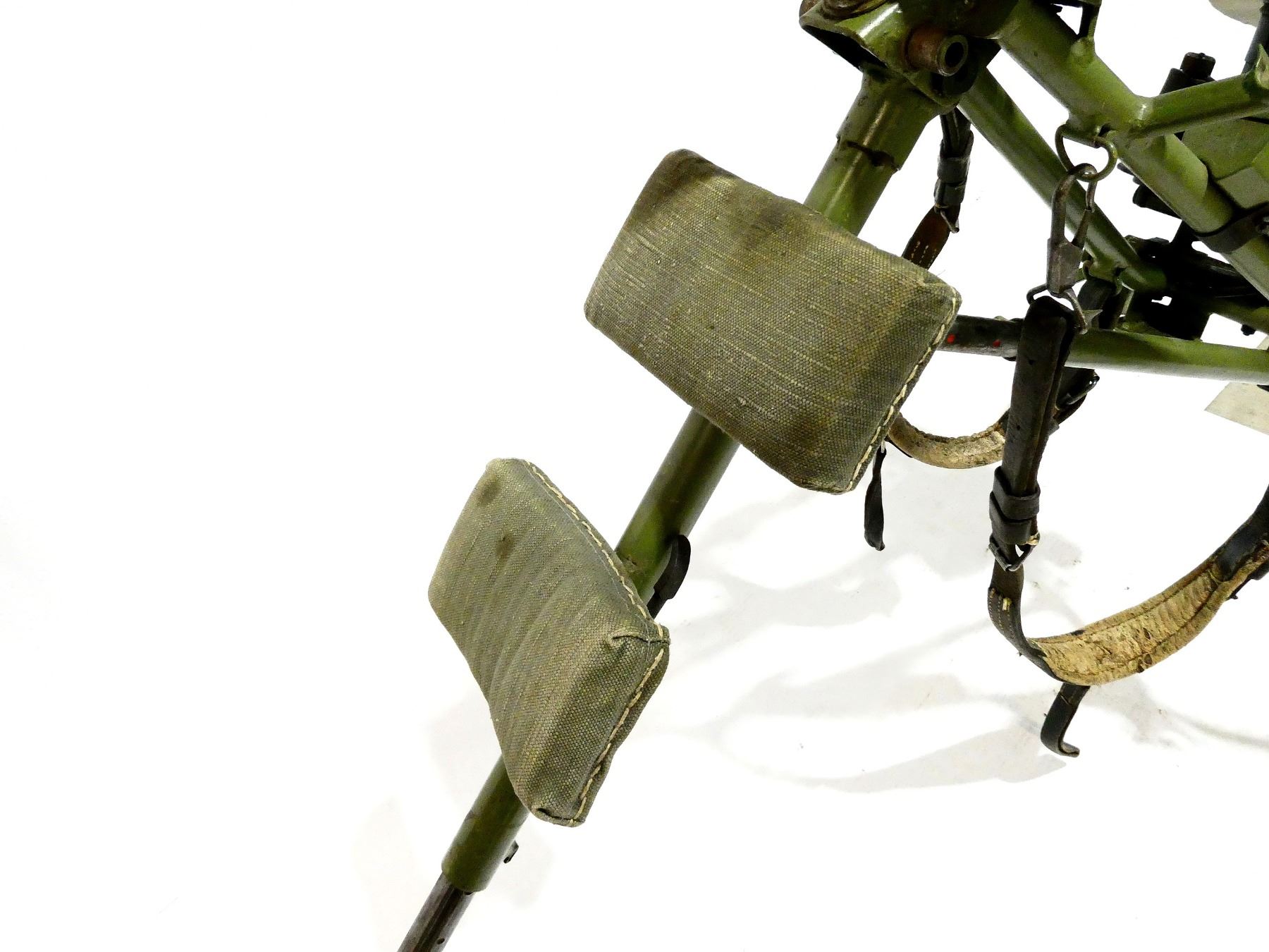 (1) FITS MG 42 / 53, 8MM MG'S, BUFFERED FULLY ADJUSTABLE MOUNT, WITH ANTI-AIRCRAFT LEG, GREEN PAINTED WITH TWO CANVAS PADS, YUGOSLAVIAN DATA PLATE ON ELEVATION MECHANISM & JUST ABOVE MECHANISM, EXTENDABLE LEGS, OILER ON RIGHT SIDE OF ELEVATION HOUSING, ELEVATION WINDAGE STOP FUNCTION WORKS CORRECTLY, WITH BROWN LEATHER SHOULDER STRAPS, APPROX. 32" X 18" X 15.5". SEE PHOTOS.