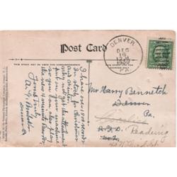Postcard featuring elderly man and woman listening to phonograph. Titled "The Edison Phonograph". 1909 postmark on reverse. Some wear and rounding on corners.