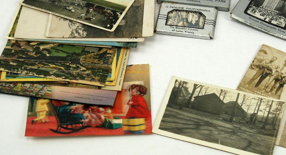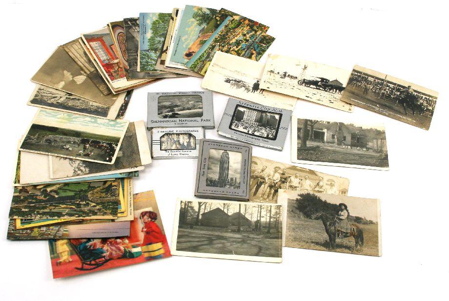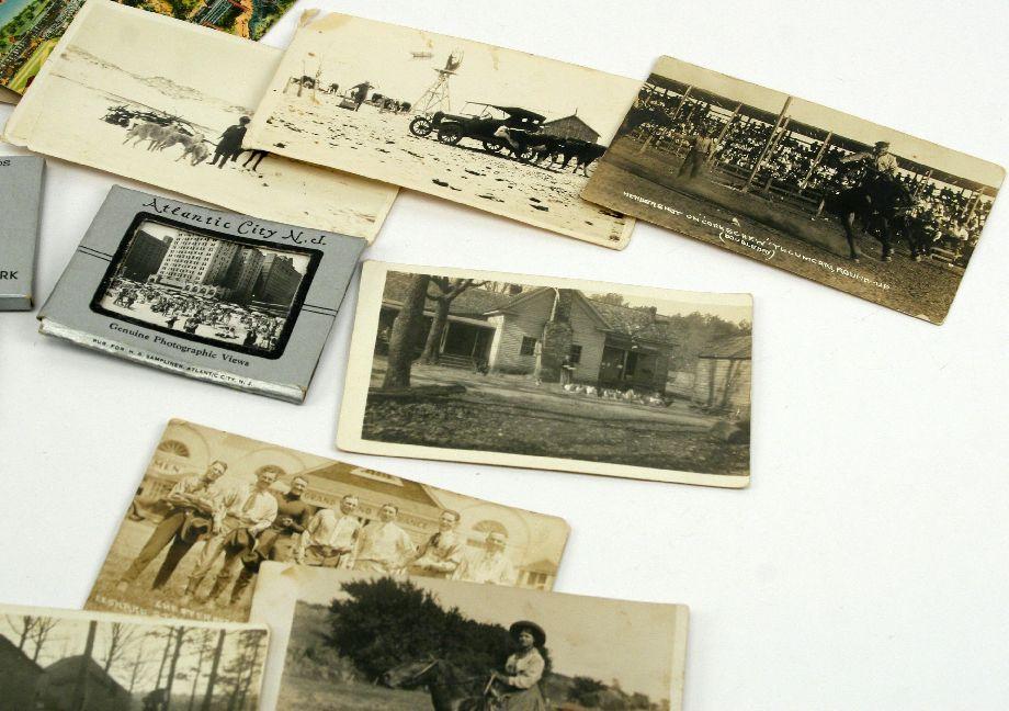 A collection of 50 or so 20th century postcards which include 9 old American west shots, including a old movie buckaroo card, balance are American touring cards.