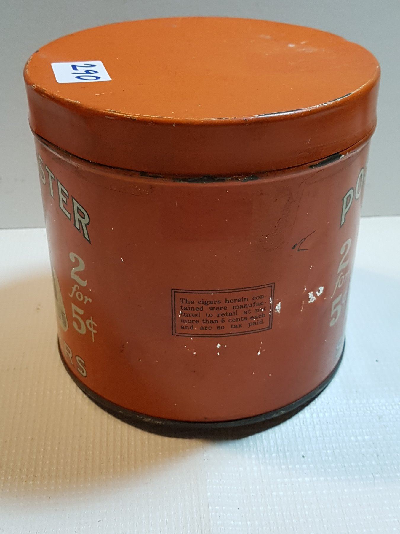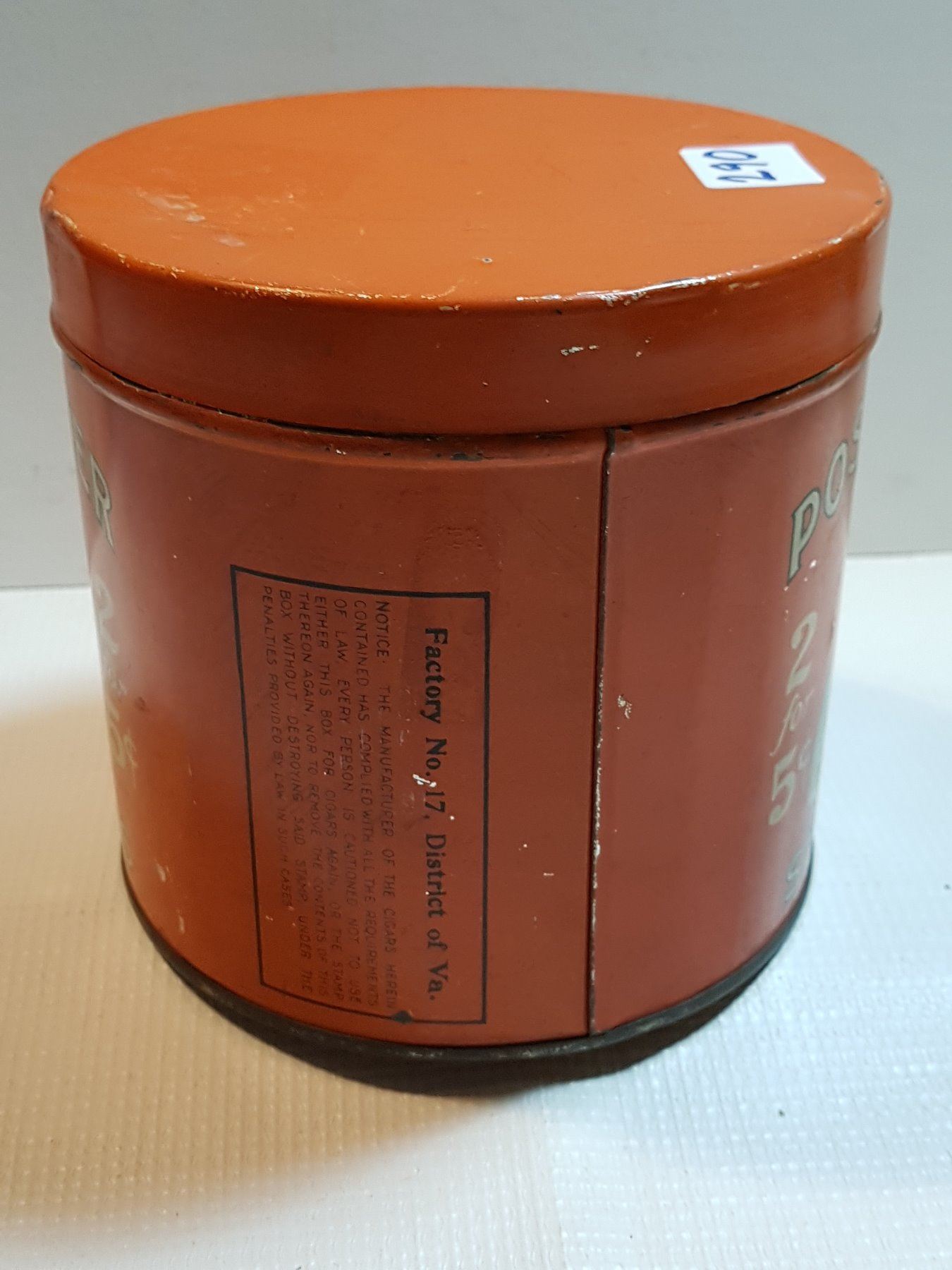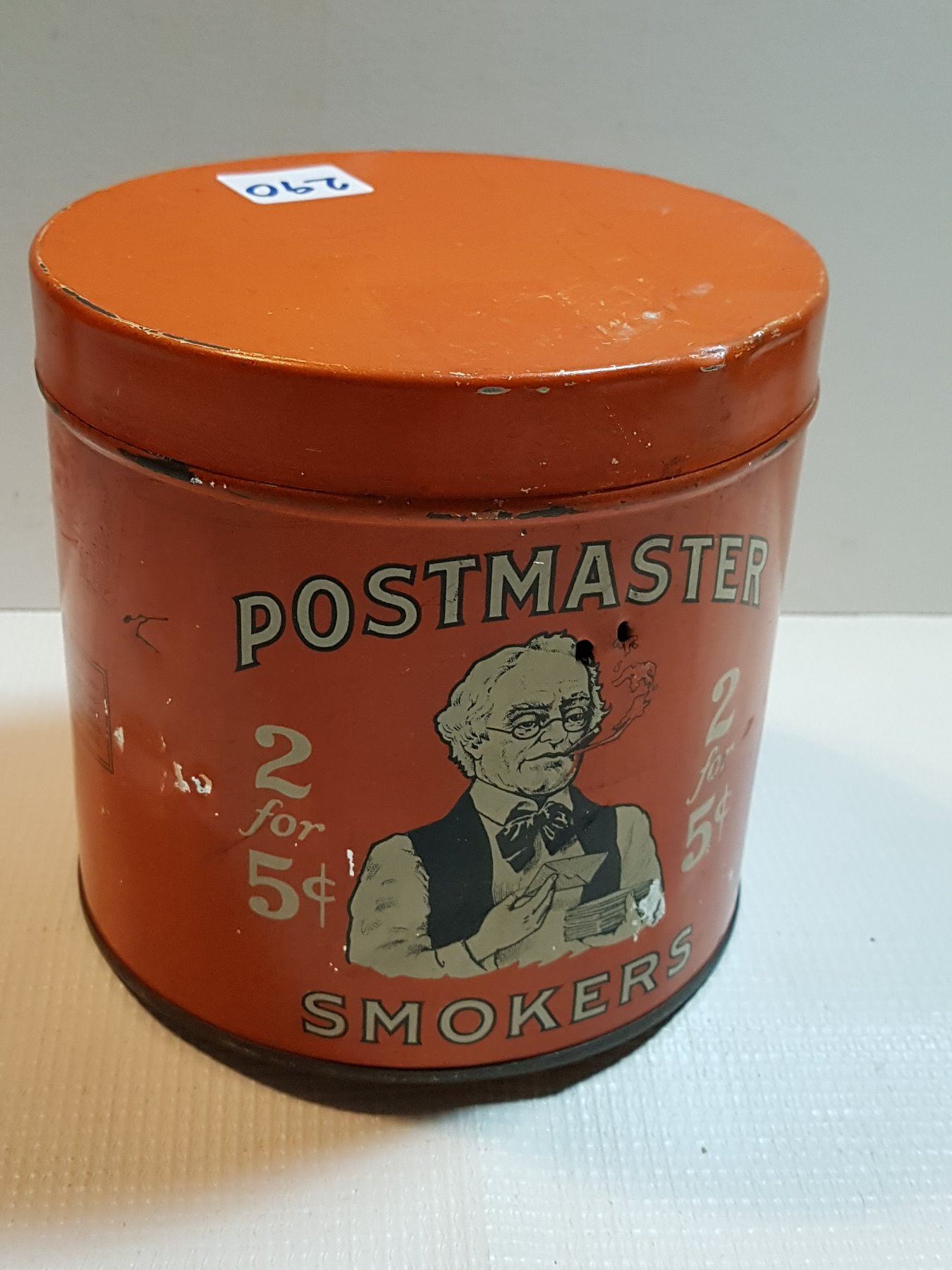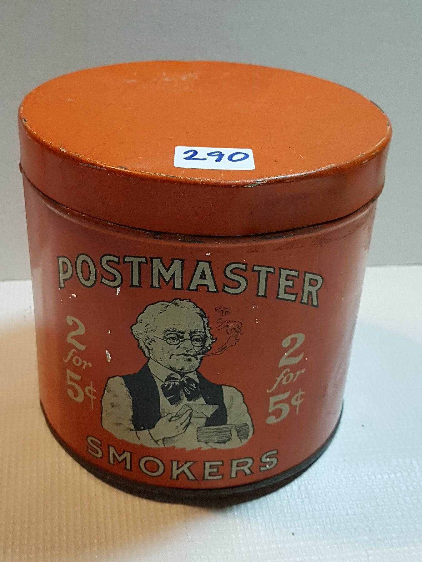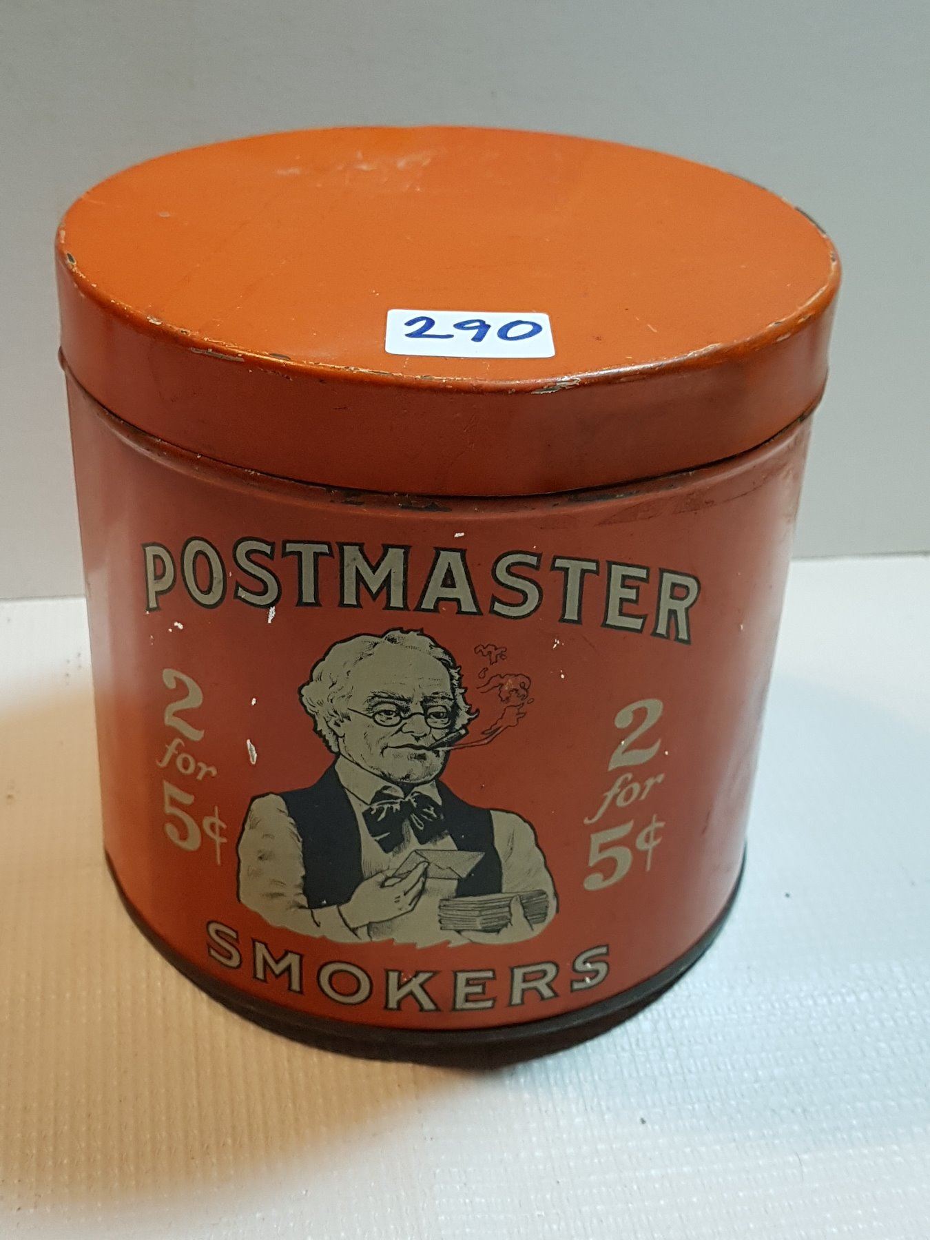 POSTMASTER 2 FOR 5 CENTS TOBACCO TIN