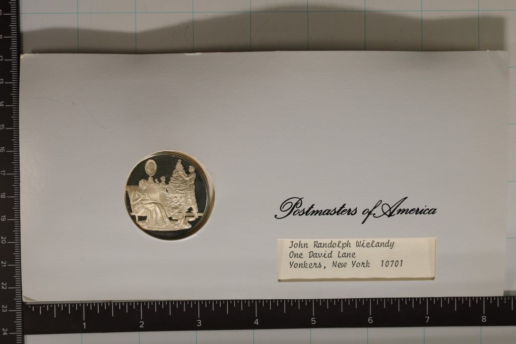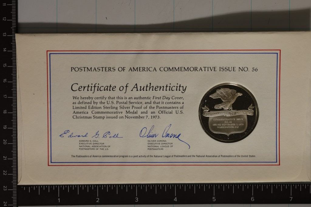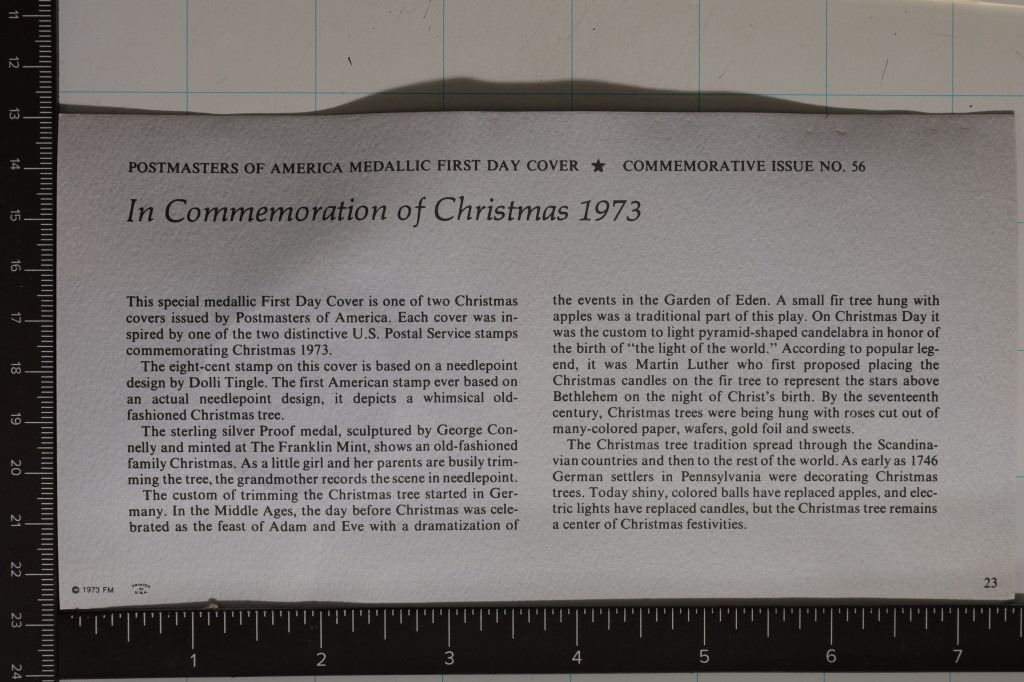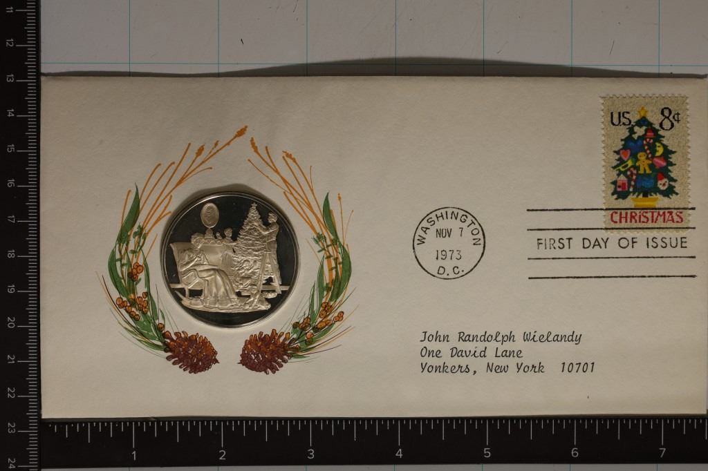 MEDAL ON FDC IN COMMEMORATION OF CHRISTMAS 1973, MEDAL IS PROOF AND HAS PAPERWORK AND OUTER ENVELOPE PIECE