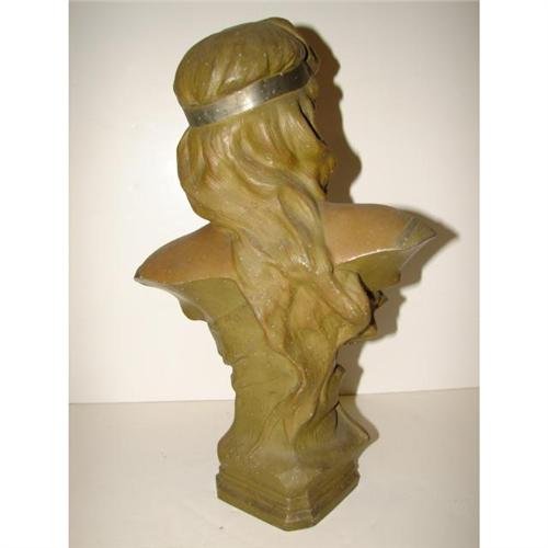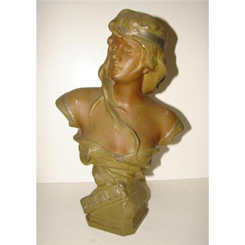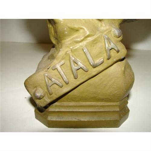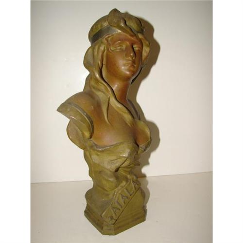 PAINTED POT METAL BUST TITLED ‘ATALA’. Depicts, Atala, the famous tragic heroine of Chateaubriand's novel. Shows some small areas of loss to paint. 14” H