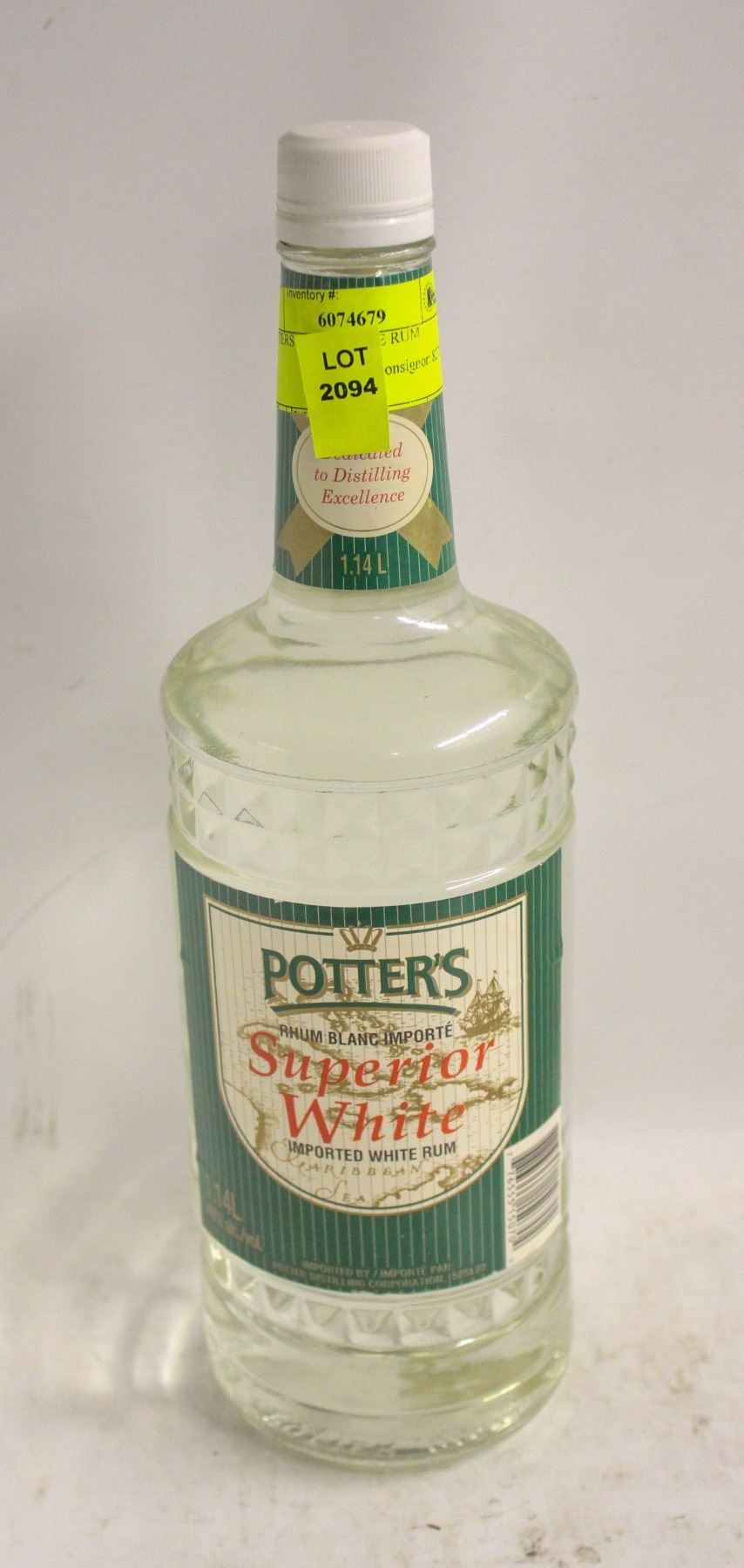 POTTERS 1.14L WHITE RUM 40% ALCOHOL
