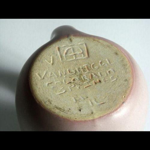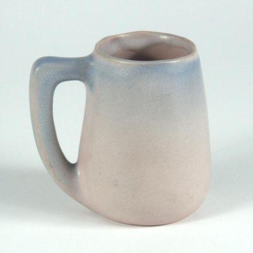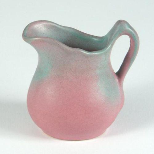 POTTERY. A lot of two pottery items, one is a tapered handled coffee mug 4 1/2"H signed Van Briggle Pottery and the second a handled cream pitcher 4 1/4" H, unsigned but in the style of Van Briggle.Note: Coffee Mug show minor glazing crack near the rim