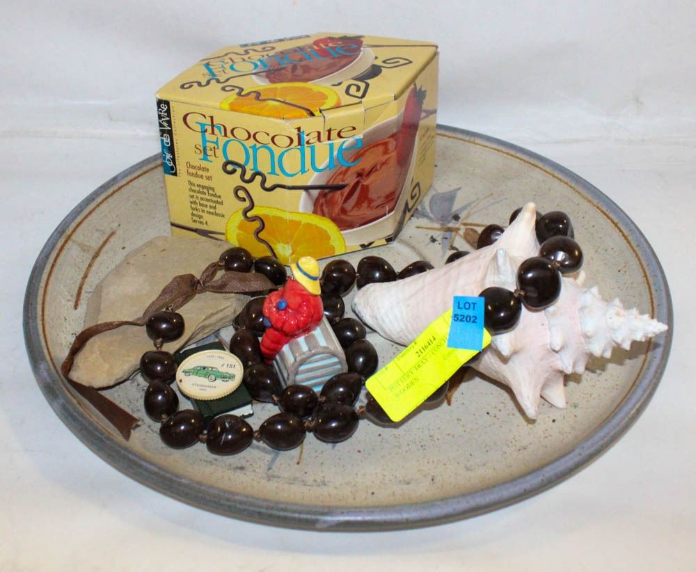 POTTERY TRAY + CONCH SHELL + WOODEN