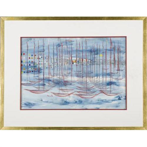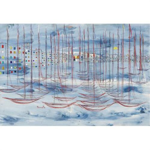 <B>Poucette </B></I>(French, b. 1935-2006)<BR><I>Sailboats<BR></B></I>Oil on artist board<BR>14-1/8 x 20-7/8 inches<BR>Signed lower left<BR><BR><BR><BR> <BR><BR><b>Shipping:</b> Requires 3rd Party Shipping (<a target="_blank" href="http://www.heritageauctions.com/common/shipping.php">view shipping information</a>)