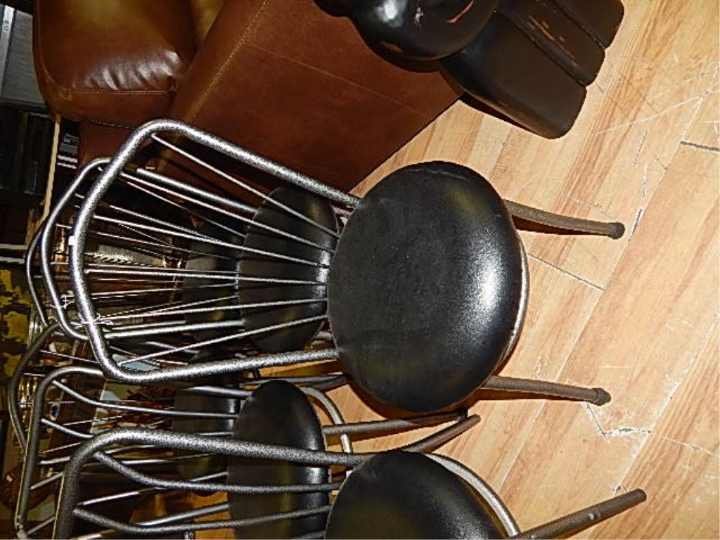 POWDER COATED METAL DINING CHAIR WITH LEATHER SEATS - POINT OF BACK OF CHAIR - BID X 4