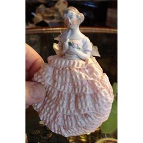 CUTE POEDER PUFF ANTIQUE PIN CUSHION DOLL WITH ,as per images - LOVELY AND ALL ORIGINAL, Excellent condition,free from chips or cracks, Measures about 4 1/4" long - US Buyer to pay 7.00 for shipping plus insurance,THANKS.