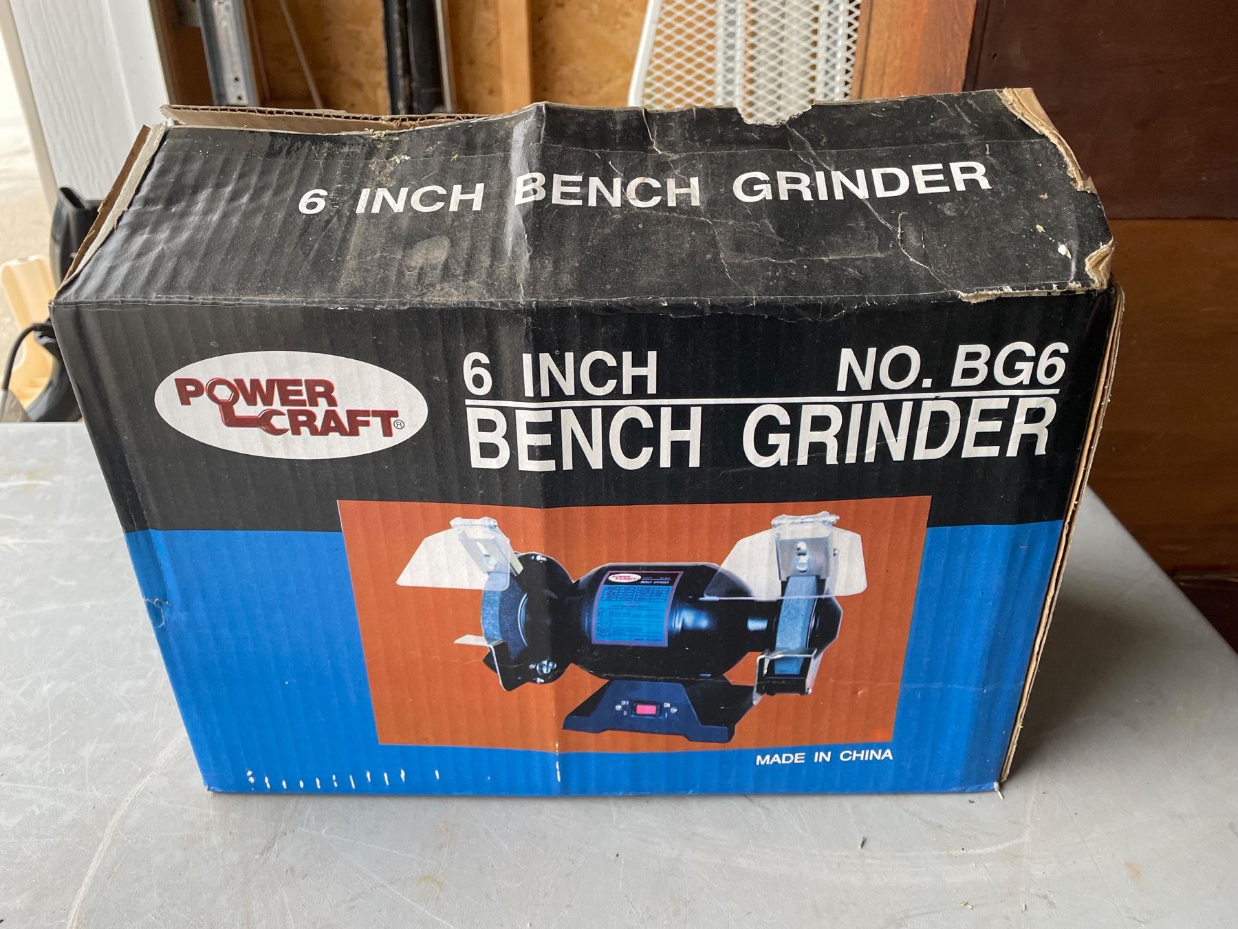 POWER CRAFT ELECTRIC 6-INCH DOUBLE BENCH GRINDER; NEW, IN BOX; 3/4 HP; 110 V; 60 HZ; 3450 RPM; MODEL BG6