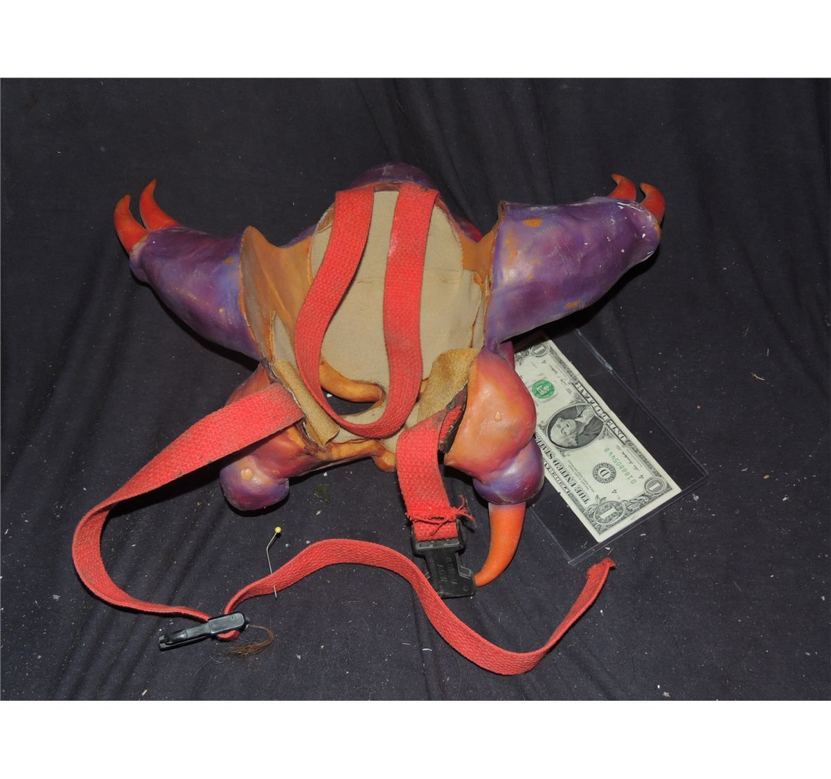 Don't quote me on this but I believe this mask is from one of the Power Rangers films or TV shows. Missing a horn but all straps are intact.