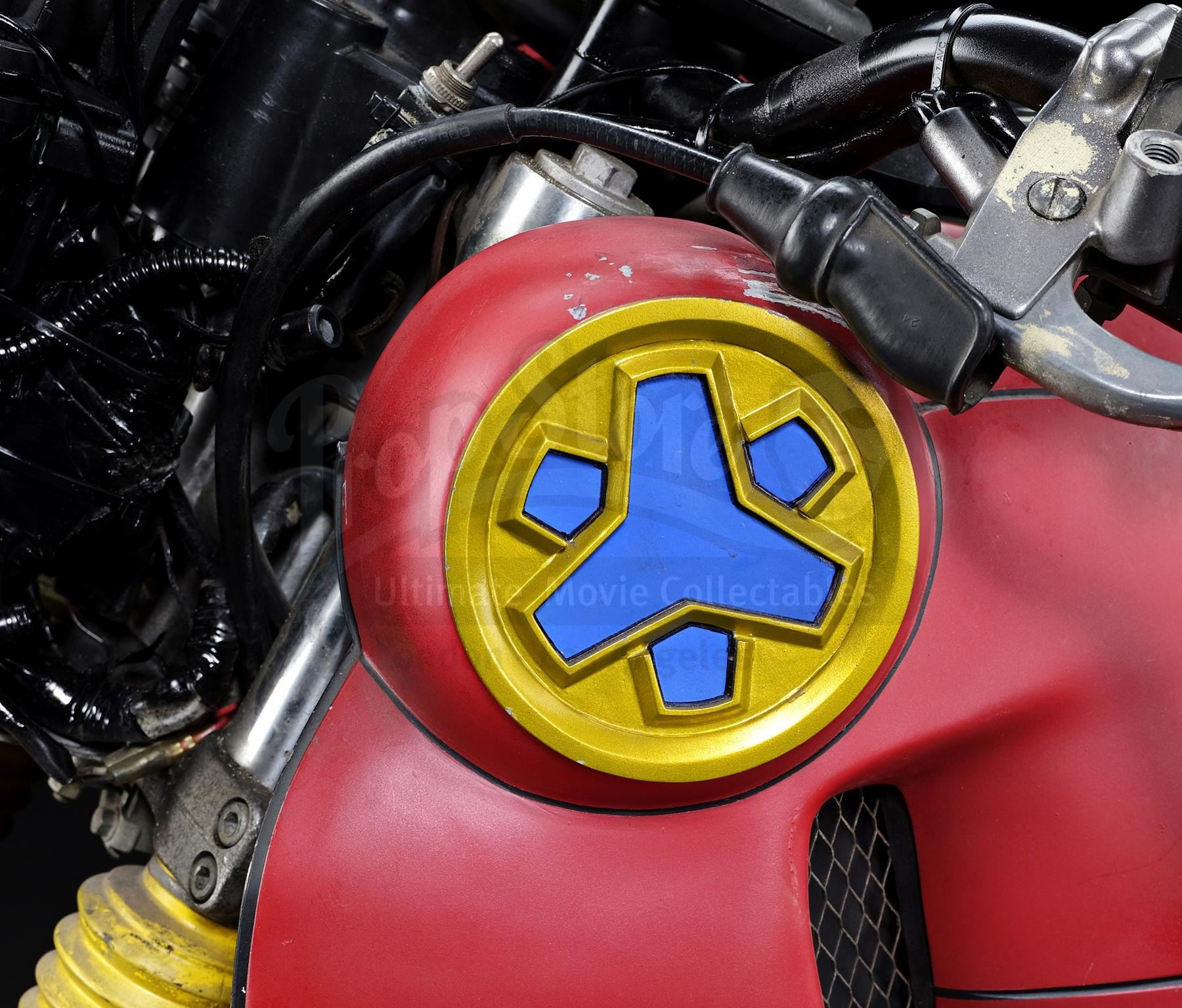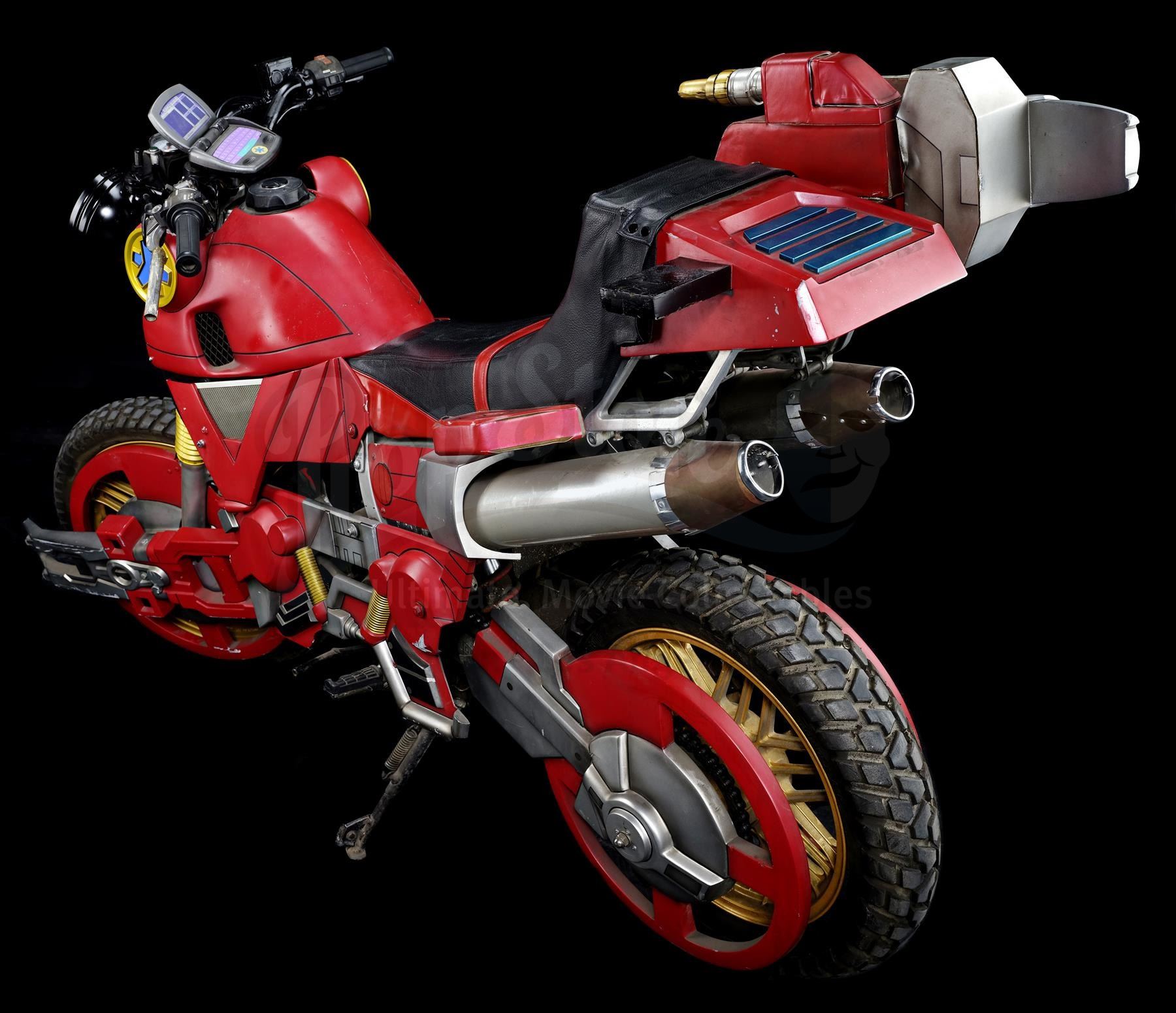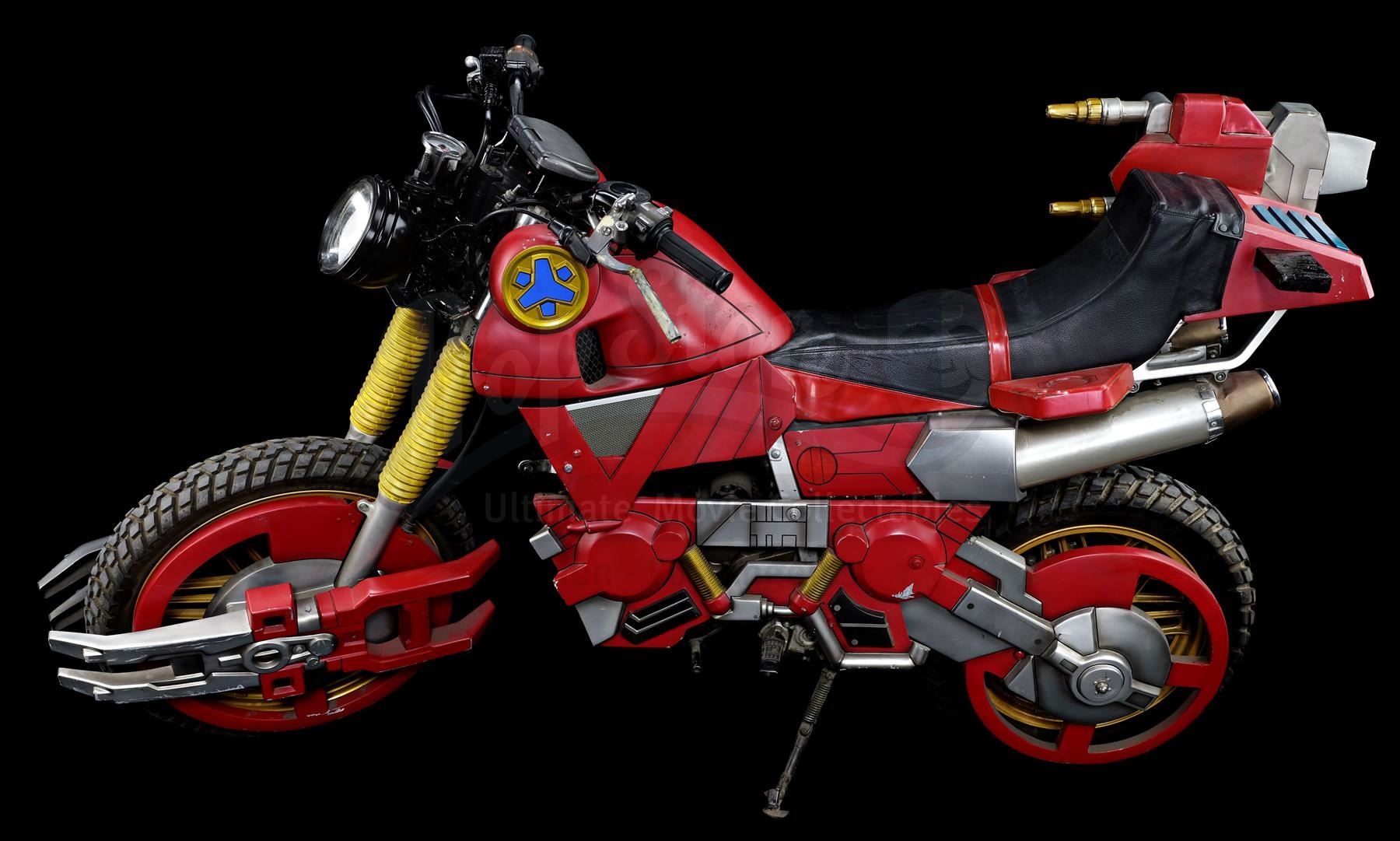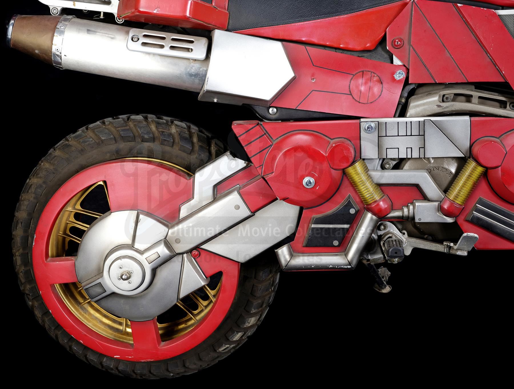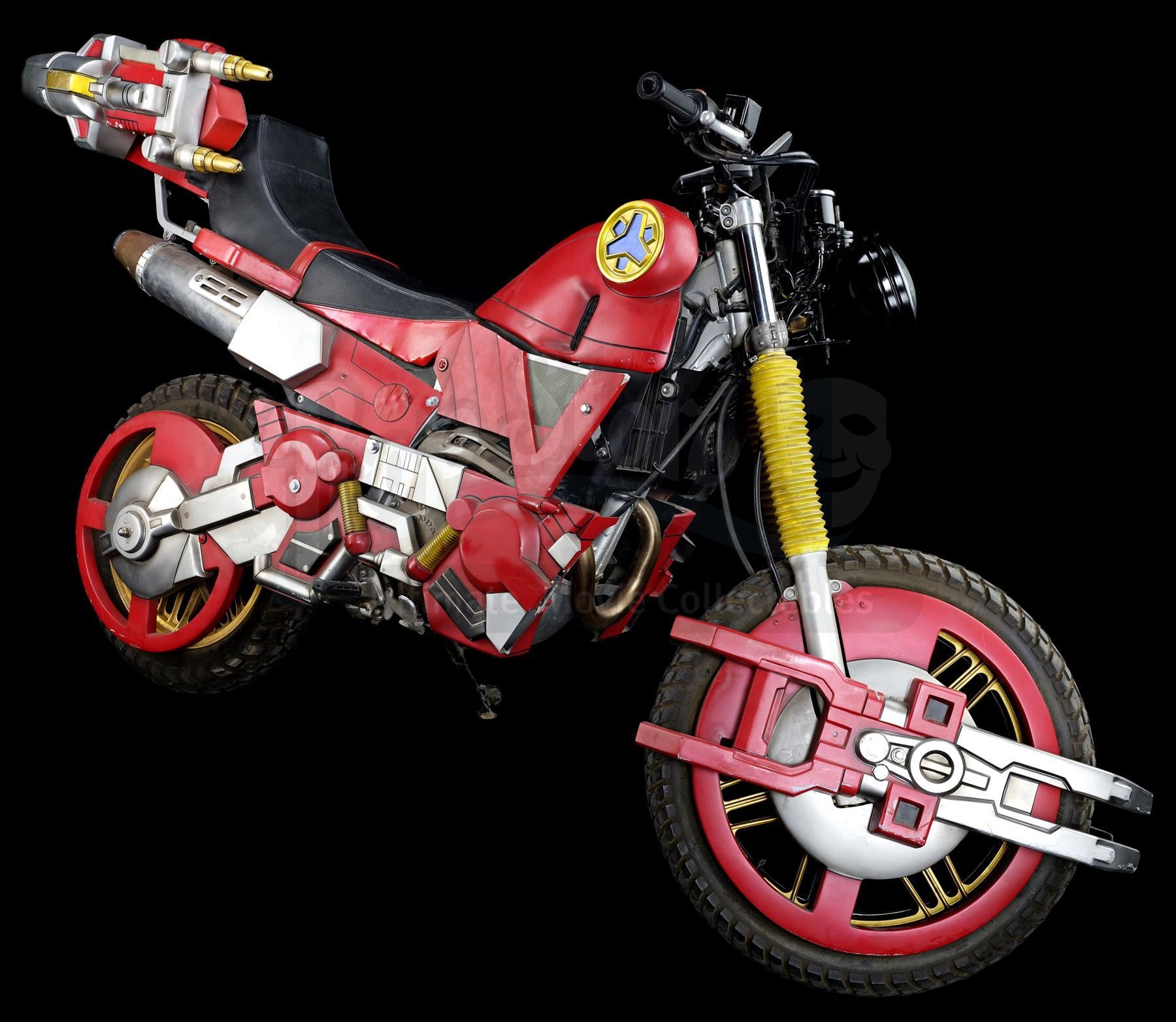 A full-size Strata Cycle from the children's action series Power Rangers Time Force. Alex Drake (Jason Faunt), the Red Time Force Ranger from the year 3000, gave the Strata Cycle and the rest of his arsonal to Wes Collins (Jason Faunt) when he granted him the mantle of the new Red Time Force Ranger.