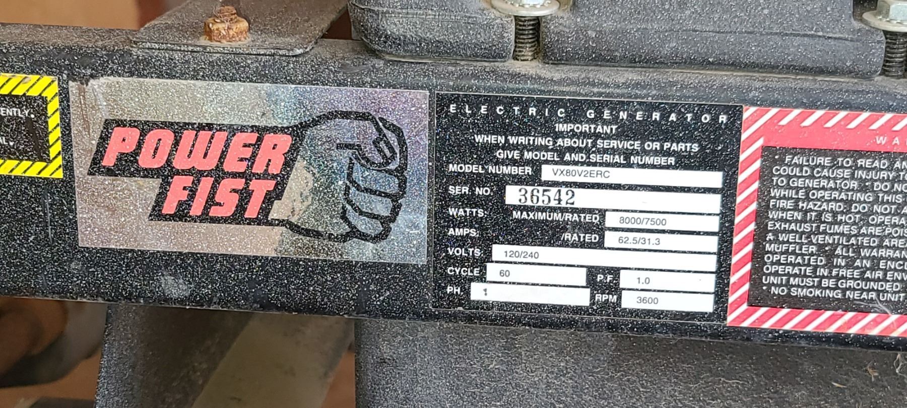 POWERFIST MOD VX80V2ERC 8000WATT GENERATOR 16HP