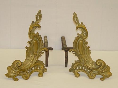 PR. 13" FRENCH BRASS FIREPLACE ANDIRONS (CHENET) - NORMAL WEAR