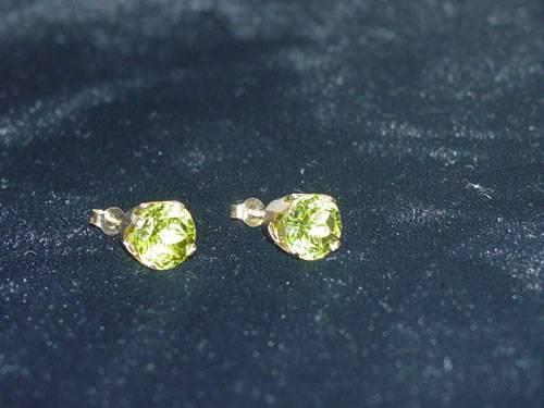 PR. 14K YELLOW GOLD 4 PRONG MOUNTED POST PIERCED ROUND PERIDOT EARRINGS - APPROX. 3 CARATS TOTAL WEIGHT;