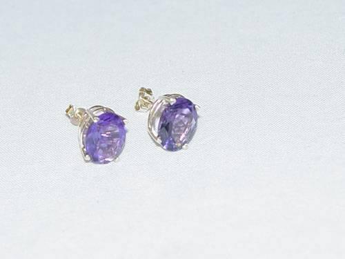 PR. 14K YELLOW GOLD 4 PRONG MOUNTED POST PIERCED OVAL AMETHYST EARRINGS - 4 1/2 CARATS TOTAL WEIGHT;