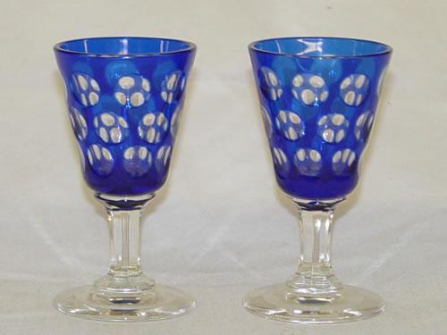 PR. 3 3/4" CUT OVERLAY CORIDALS-COBALT CUT TO CLEAR W/ CLEAR STEMS & FOOT - POLISHED BOTTOMS