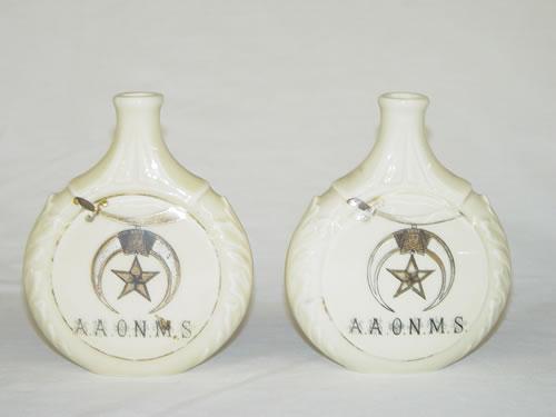 PR. 4 3/4" H PORCELAIN MASONIC FLASKS-MADE IN GERMANY, WEAR TO GOLD