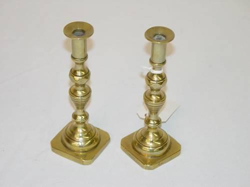 PR. 6" 19TH CENT. BRASS BEEHIVE CANDLESTICKS;