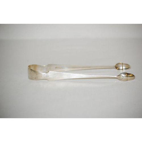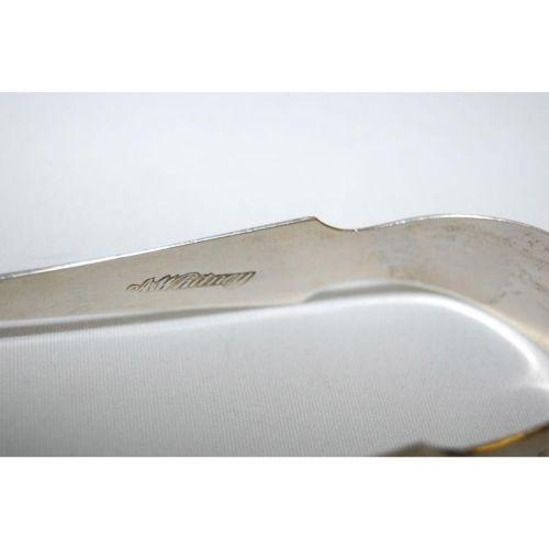 PR. 7" STERLING SUGAR TONGS W/ ACORN FORM BOWLS-BRIGHT CUT DESIGN, SIGNED A. WHITNEY (2 TROY OZ.) - MONOGRAM REMOVED, WEAR & IMPERFECTIONS