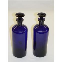 PR. 8 3/4" BLOWN COBALT APOTHECARY JARS W/ STOPPERS, PONTIL
