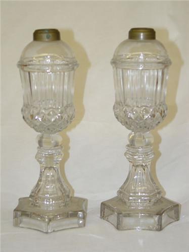 PR. 9" SANDWICH CLEAR OIL LAMPS-FLUTED & DIAMOND PATTERN