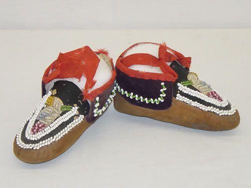PR. AMERICAN INDIAN EASTERN WOODLAND 6" BEADED LEATHER MOCCASINS - IMPERFECTIONS & LOSSES