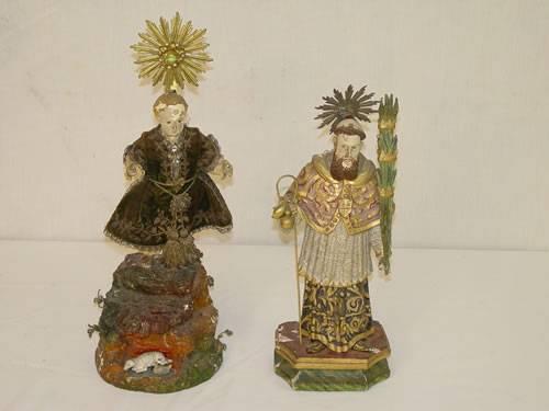 PR. EARLY PAINTED GESSO ON WOOD SANTOS FIGURES - LOSSES TO PAINT & SURFACE;