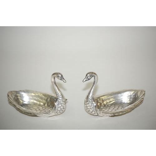 PR. GORHAM STERLING SWAN FORM SALTS - PR. 20TH CENT.<BR>FIGURAL SWAN MASTER SALTS-MARKED GORHAM STERLING 34A<BR>(EA. 2 3/4" T X 4" L; 4 TROY OZ.) - MINOR WEAR