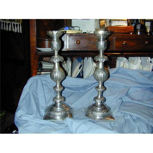 I am priveleged to offer a gorgeous pair of Judiacca Sabbath candlesticks made in the Russian Empire between 1896-1908.