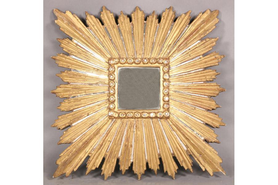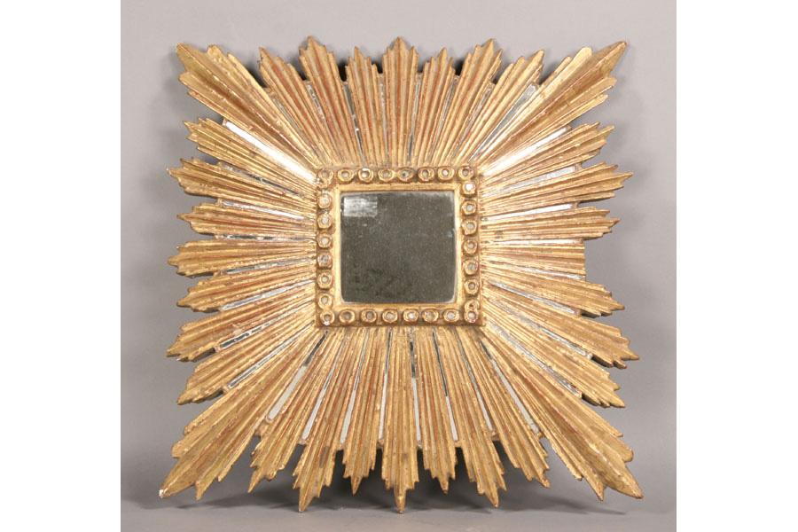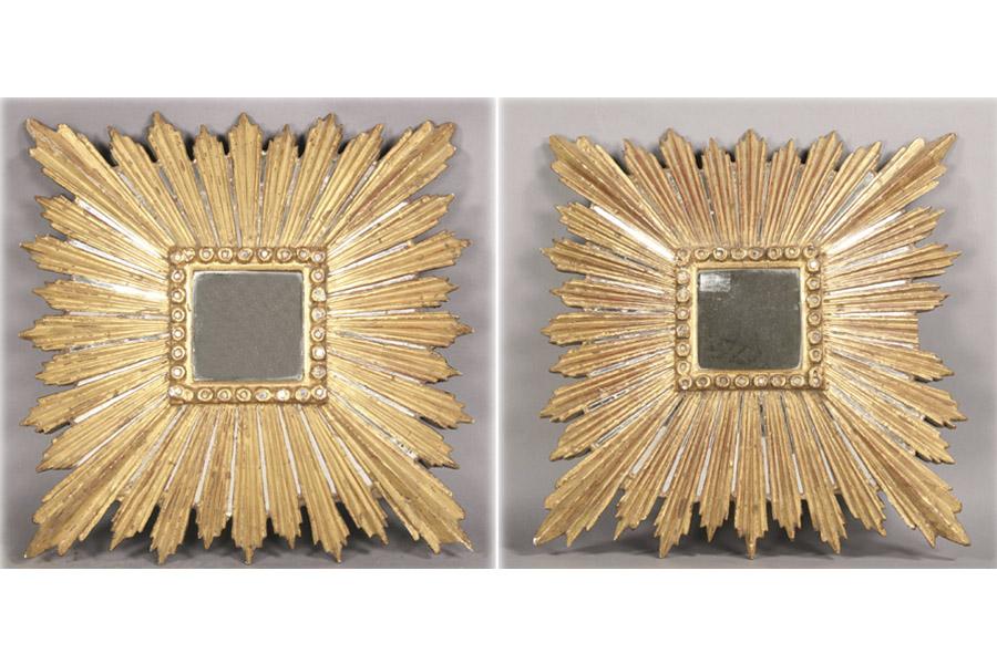 Pair of giltwood carved sunburst mirrors. Dimensions: Ht: 22" Width: 22" Depth: 6" **PLEASE NOTE: All property shall be paid for by the purchaser within five (5) business days of the sale. Kamelot Auctions accepts cash (In house only), personal checks, certified checks and money orders. We do not accept credit cards or Paypal under any circumstances. Please note our policy regarding payments from International buyers: The only acceptable method of payment is a bank wire/bank transfer. For invoices more than $1000, there is no additional fee for this service. For invoices less than $1000, please include an additional $25 wire fee. We will be happy to forward our bank wiring information after the completion of the auction. Thank you for your understanding and cooperation. All purchases must be removed within 15 business days after an auction. Property not removed from our facility after 15 business days will be moved to an off-site storage facility at a charge of $10.00 per day payable by the buyer. Kamelot does NOT provide shipping services or estimates. However, we recommend the following independent shipping services: Antique Transport Co. at antiquetransport@cs.com, Farren Transport at farrentransport@comcast.net or All Points Shipping at jb@allpointsshippingnj.com for quotations and shipping arrangements for furniture and other large items that would require a blanket wrap shipping company. For quotations and shipping arrangements for smaller items that would traditionally be shipped through UPS, please contact The UPS Store at store4744@theupsstore.com or The Packaging Store at hrpa112@aol.com. Clients are welcome to pick up their items from our location or make their own shipping arrangements.