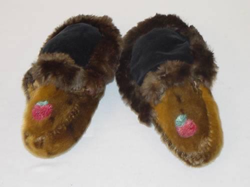 PR. NATIVE AMERICAN SEAL FUR MOCASSINS DECORATED W/ MOOSE HAIR EMBROIDERY;