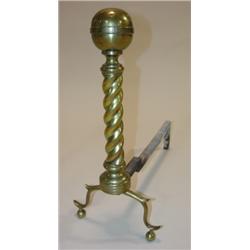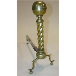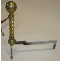 Pair of brass cannonball andirons with ball feet. 18.25" H.